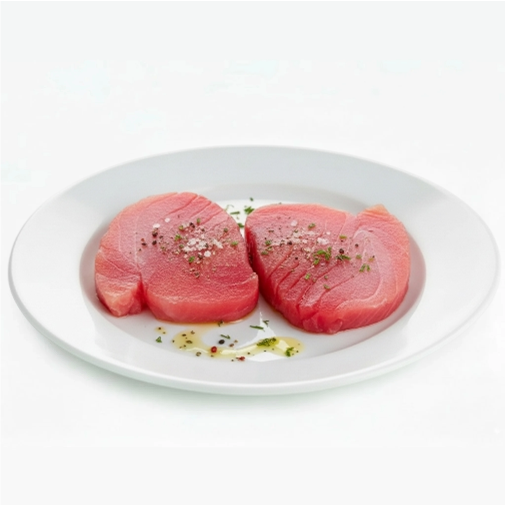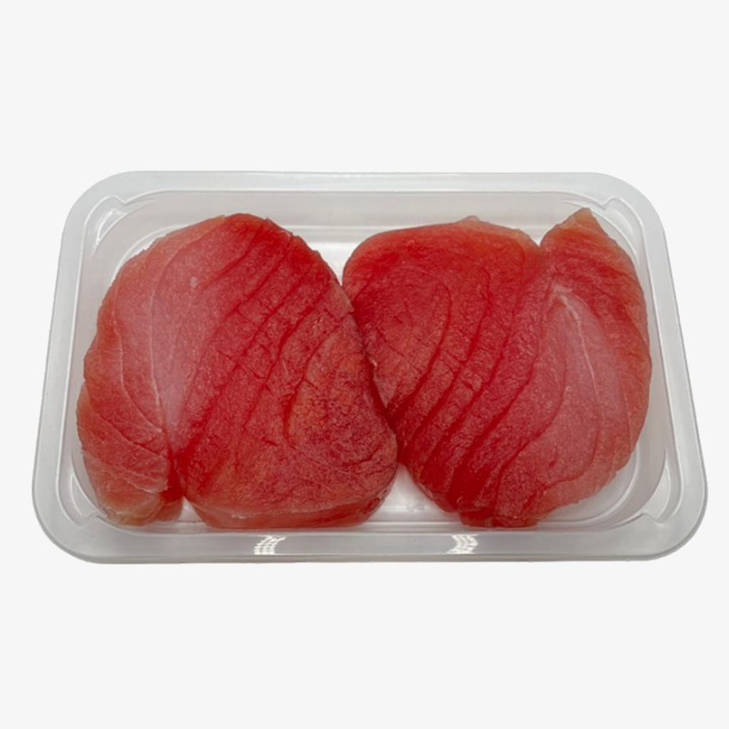 2 freschissimi tranci di tonno, confezionati in atmosfera protettiva, da scottare alla piastra o cubettare in zuppe e sughi.